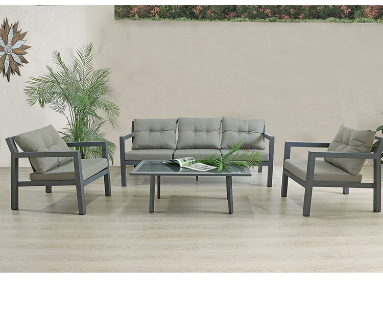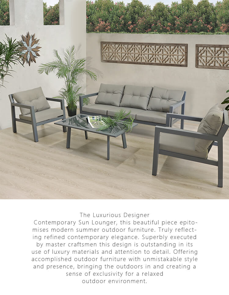 Kesin konfor için kalın ve yumuşak minderlere sahip bu muhteşem 4 parçalı koltuk takımı ile verandanızı rahatlatıcı bir inzivaya dönüştürün.Bir adet 3'lü kanepe, 2 adet tekli koltuk ve uyumlu bir sehpa, siz ve konuklarınızın güneş altında serinletici içeceklerin tadını çıkarması için geniş oturma ve servis alanı sunar.Her mobilya parçası bağımsızdır ve tercihinize göre yeniden düzenlenebilir.